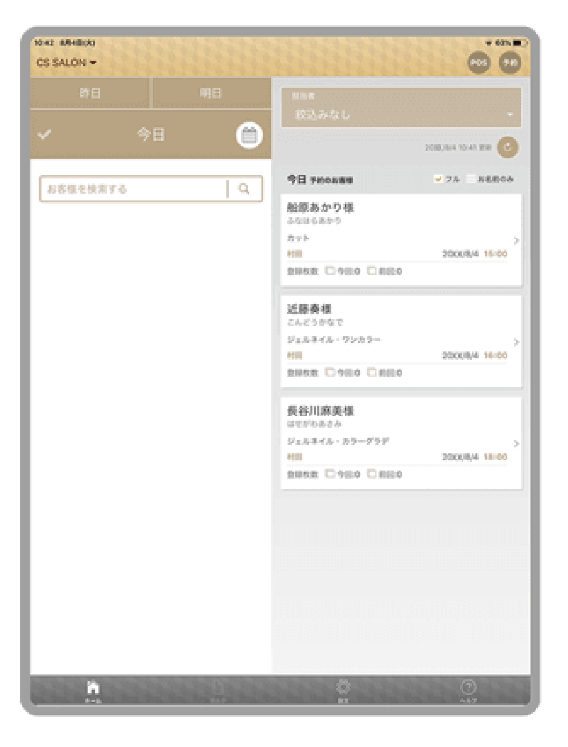 予約システムと連動しているので、その日に来店のお客様を自動で表示。